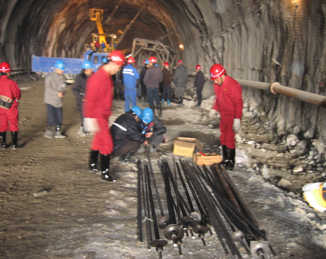 圖強(qiáng)低預(yù)應(yīng)力錨桿施工簡(jiǎn)單方便,在鄭萬高鐵的隧道工程應(yīng)用中優(yōu)化的鋼拱架設(shè)置;在錦屏二級(jí)水電站高埋深巖爆威脅起到了極大作用;在京張高鐵八達(dá)嶺大跨度車站多硐室地下車站支護(hù)中極大的保證了安全性;如今正在國(guó)家重點(diǎn)工程川藏鐵路做為復(fù)雜地質(zhì)條件隧道系統(tǒng)主動(dòng)支護(hù)發(fā)揮重大的作用。